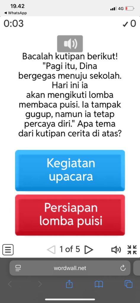 Beberapa kegiatan yang dilakukan diantaranya : Pembuatan game interaktif Wordwall untuk pelajaran Bahasa Indonesia, Pelaksanaan kuis digital menggunakan Quizizz sebagai metode evaluasi pembelajaran, Pelatihan singkat kepada guru-guru dalam penggunaan kedua platform tersebut.