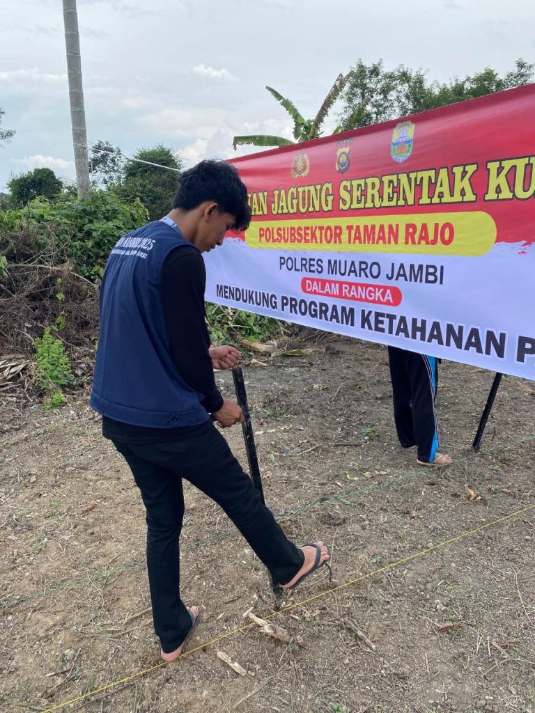 Muaro Jambi (20/7/25) Mahasiswa Universitas Islam Negeri Sulthan Thaha Saifuddin Jambi, Reza Mahendra, yang sedang melaksanakan Kuliah Kerja Nyata (KKN) di Desa Kunangan,Kecamatan Taman Rajo, Kabupaten Muaro Jambi, turut berpartisipasi dalam program Ketahanan Pangan melalui kegiatan Penanaman Jagung Serentak Kuartal III.
